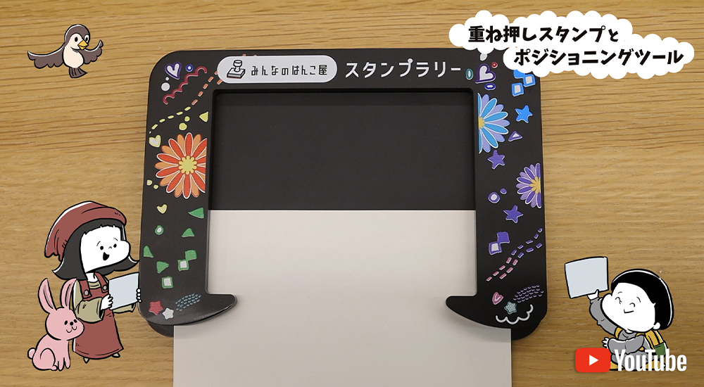 ※ポジショニングツールにハガキを挿入した際に若干のゆとりを持たせておりますので、重ね押しスタンプした際に0.5mm〜1mm程のズレが生じる場合がございますことご了承ください。